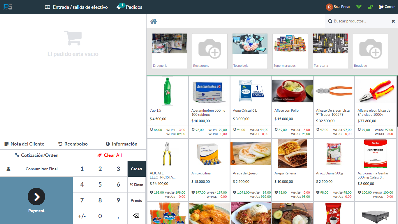 - Incluye: punto de pago, un usuario, un cajero y control de inventario.